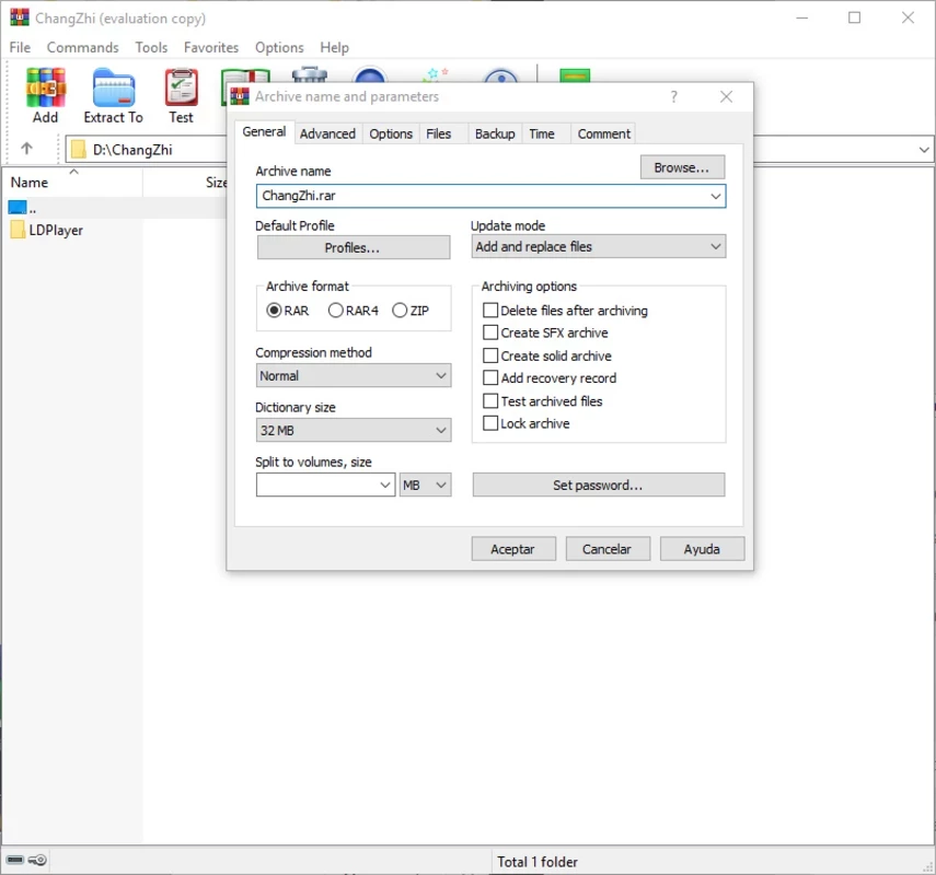 The Add option offers different tabs i.e. General, Advanced, Options, Files, Backups, Time, and Comment for doing multiple tasks. You can use the General tab to save the archive, RAR, ZIP, etc, simply select the option, and press the OK button to start the process. Next, the Set Password option is available for compressing the files. You need to select an authentic and easy password.